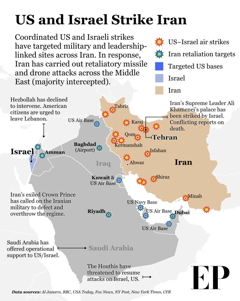 On February 28, US and Israeli forces launch coordinated strikes on Iran.