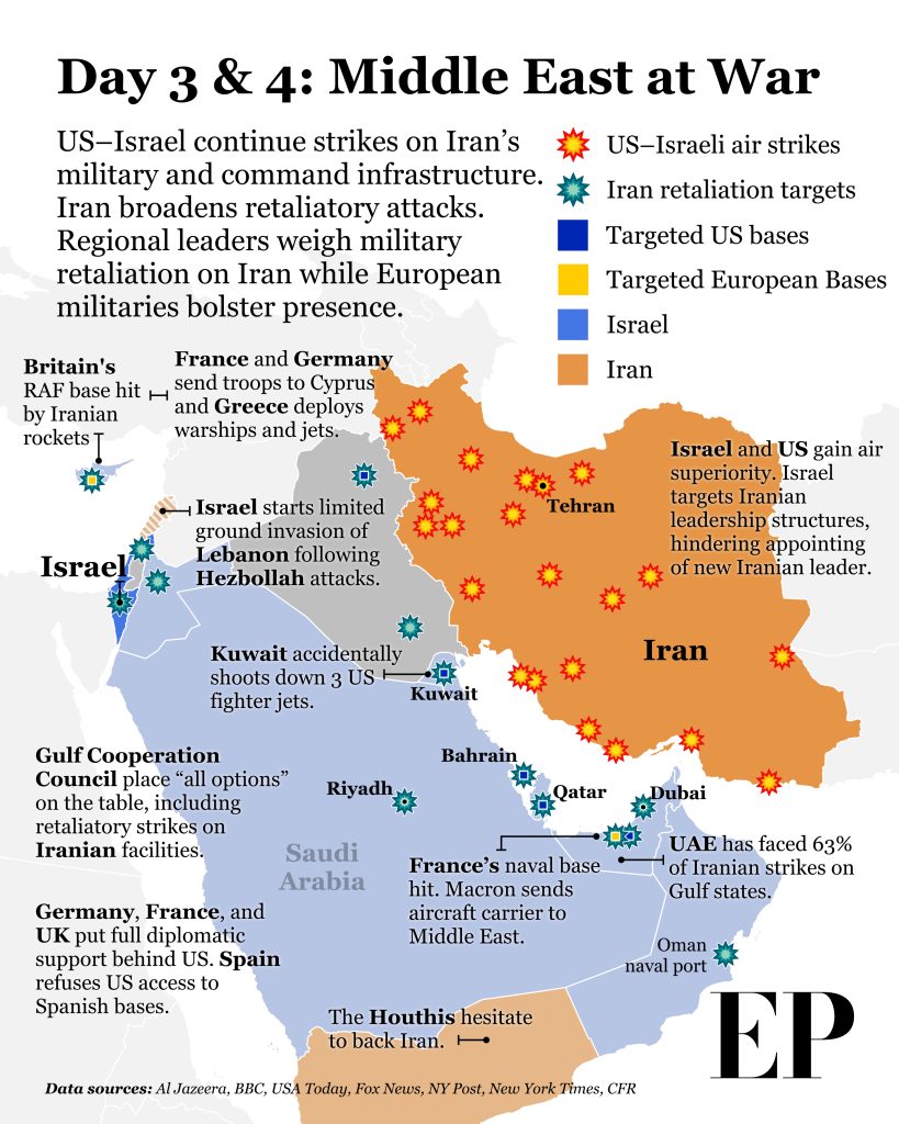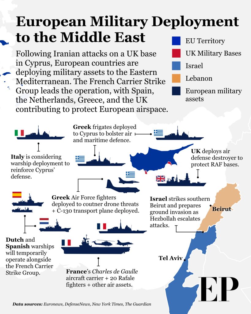 As the conflict expands, European states begin repositioning forces across the Eastern Mediterranean.